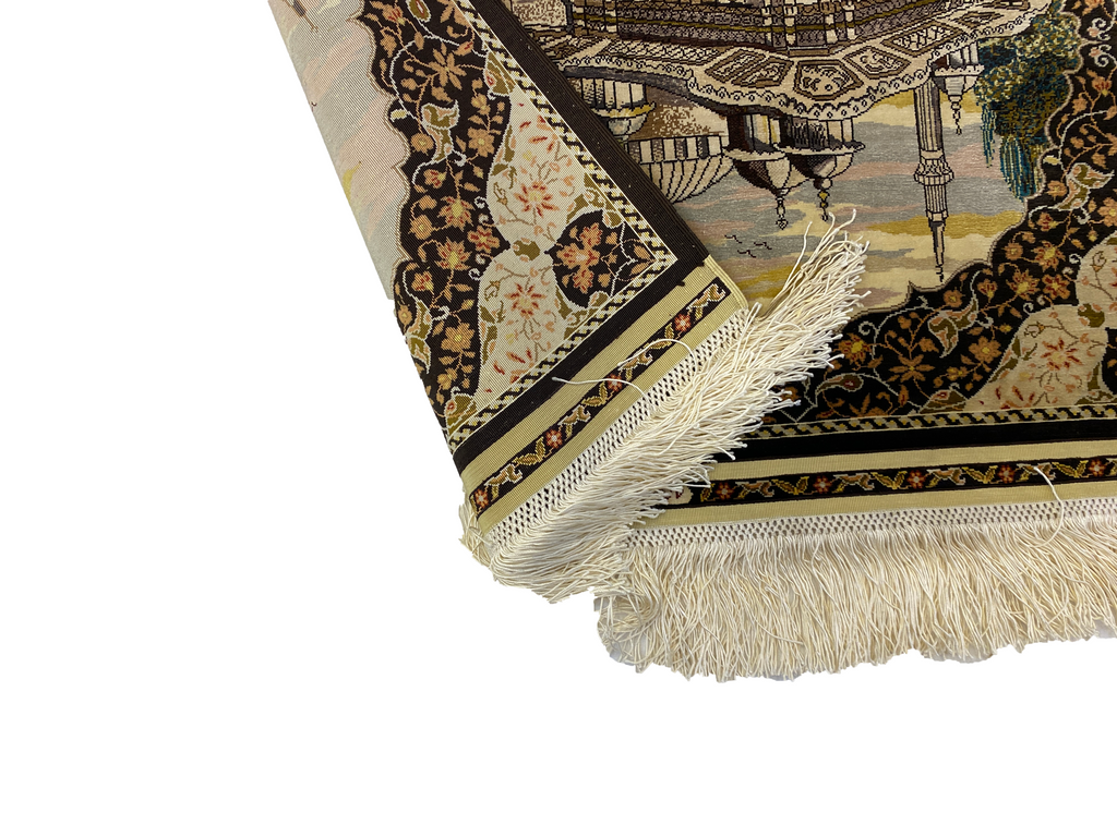 Alfombra Hereke 100% Seda Pura Hecha a Mano 55 x 42 cm